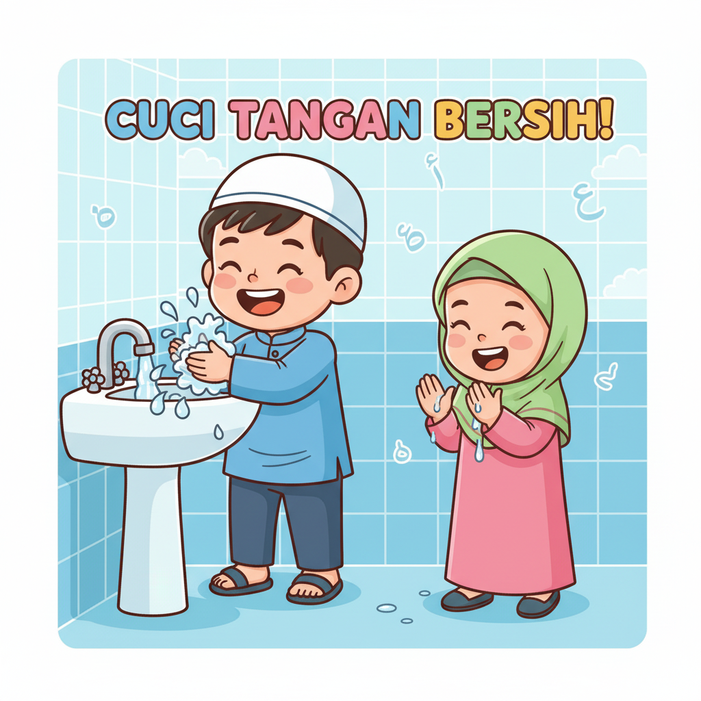 Mencuci tangan dilakukan sebelum makan, sebelum shalat, atau setelah beraktivitas.